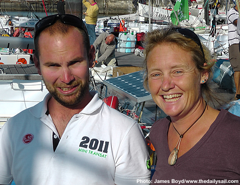 2011 is Dytch’s third year in the Mini. In his first year he sailed an older Proto, 312, Night Fever, which he worked on extensively and took part in a few races keeping the boat in the UK. Last year he moved the boat to Lorient from where he raced and took part in the local Mini training group. He competed in the Mini class’ Les Sables d’Olonne-Azores-Les Sables d’Olonne race and following his result in that was chosen to become the new skipper of Soitec, a substantially newer Mini, campaigned in the 2009 transatlantic race by Fabien Després.